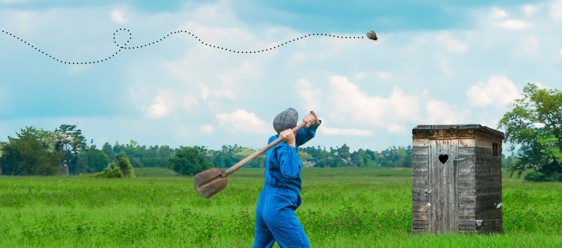 In de ouderwetse wc midden in het weiland woont een familie wc-motten. Een wc-mot is een vlindertje niet veel groter dan een vlieg. Vandaag vliegt de zoon van de wc mot voor het eerst uit.…